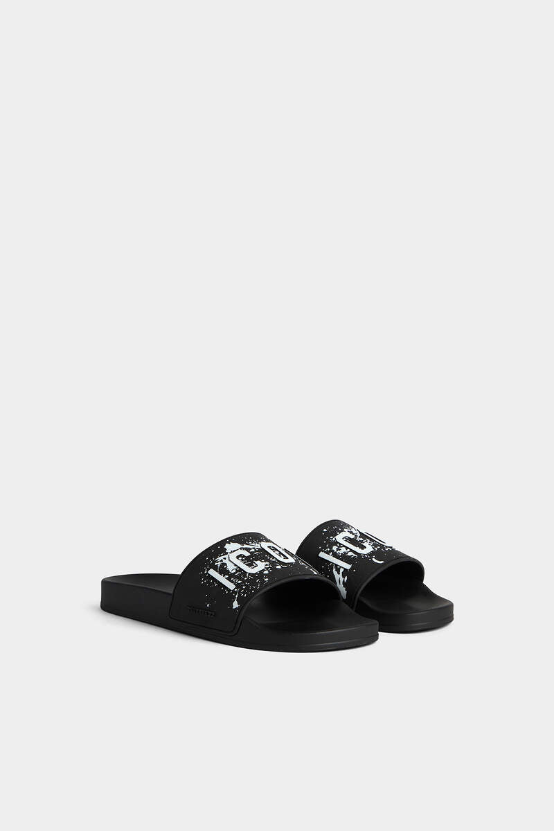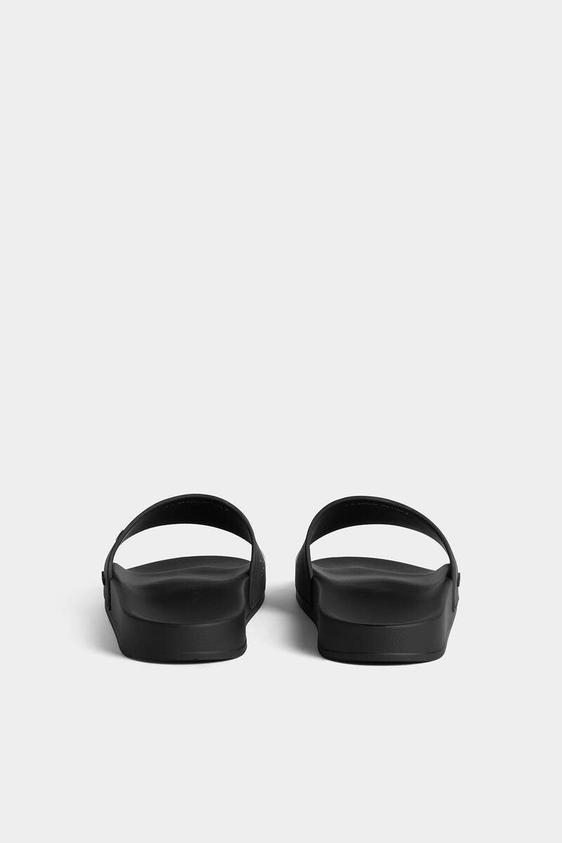 La ciabatta slide di gomma, ideale per spiaggia o piscina, è decorata con la scritta Icon stampata sulla fascia. Il sottopiede sagomato ed ergonomico garantisce maggior stabilità al piede. Ideale l'abbinamento con costume da bagno e short in denim. Accessori: una borsa a tracolla in nylon e occhiali da sole.