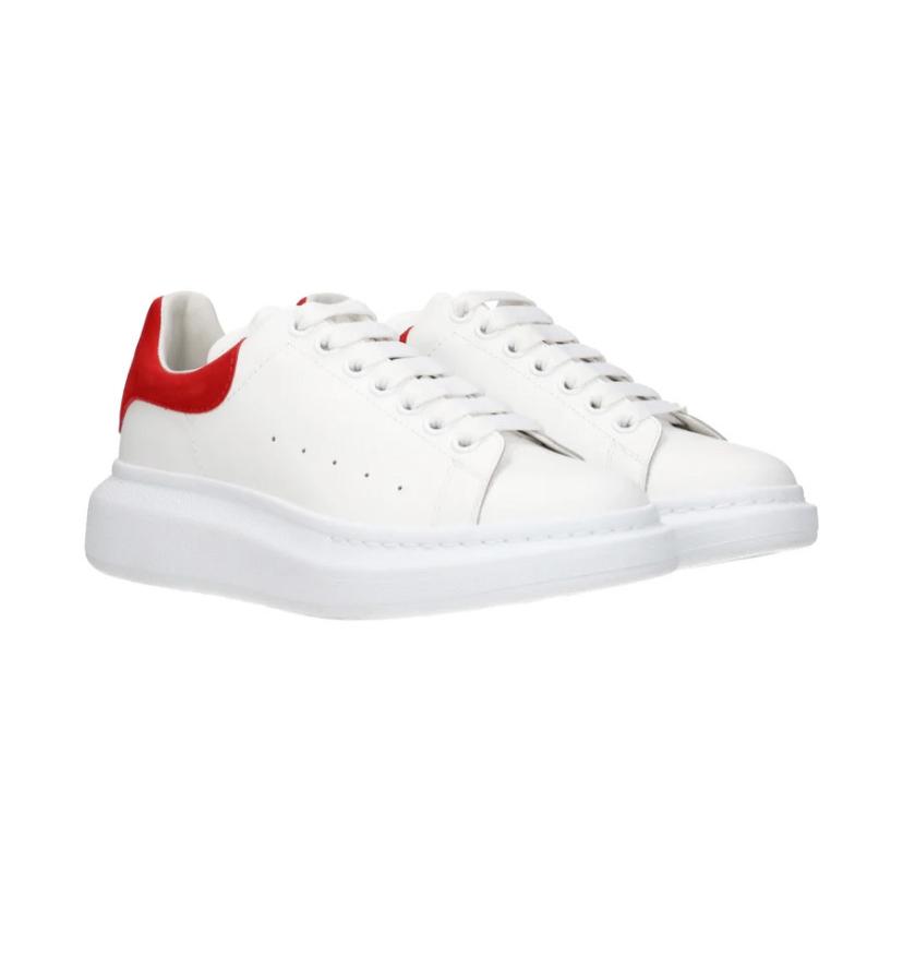 Queste sneakers Alexander McQUEEN sono realizzate in pelle bianca liscia, dettagli in pelle scamosciata rossa sul tallone, ampi lacci piatti e suola in gomma oversize con il logo del marchio sulla linguetta e sul tallone.