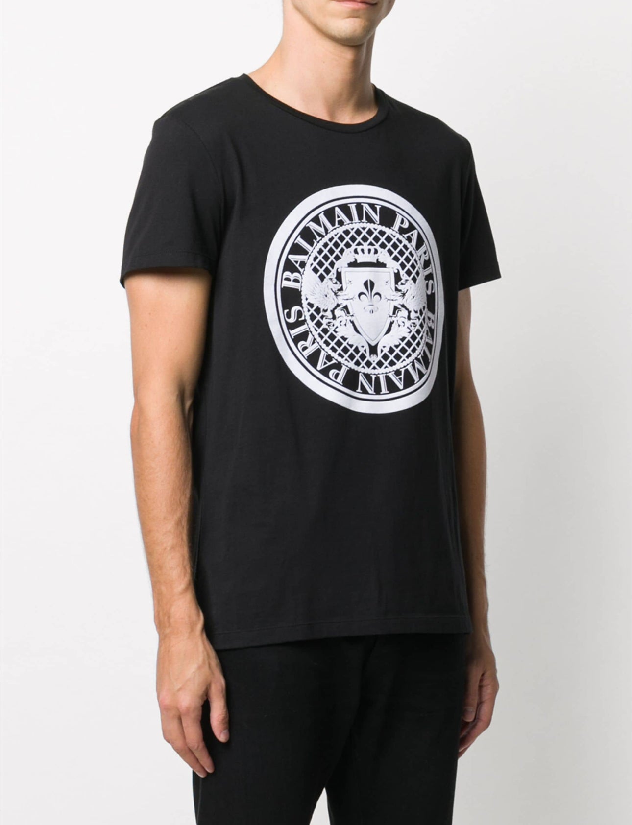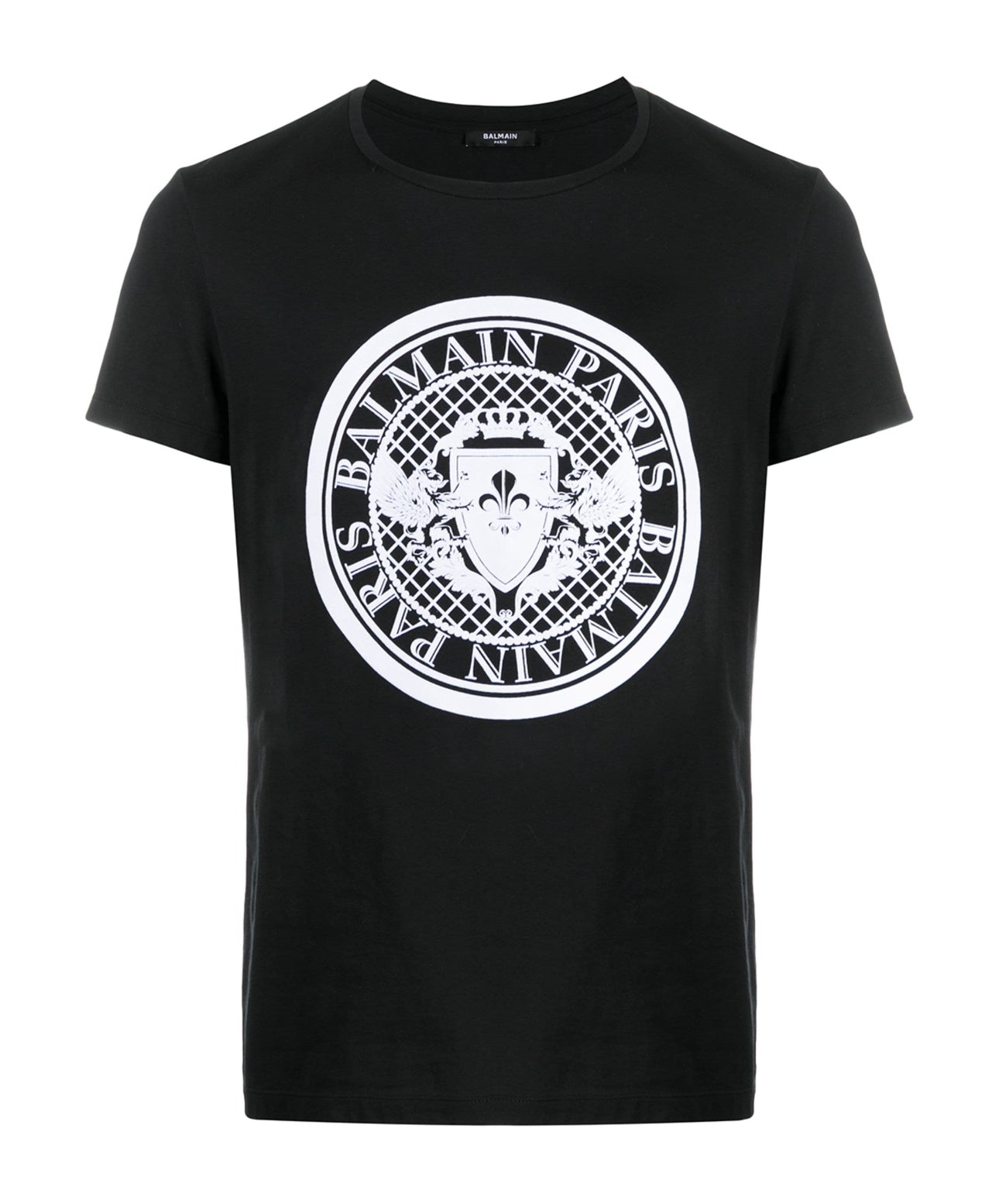 T-shirt nera BALMAIN. Realizzata con tessuto 100% cotone per il massimo comfort e durata. L'aggiunta perfetta a qualsiasi guardaroba, questa maglietta vanta un design professionale ed elegante che sicuramente impressionerà. Fai una dichiarazione con BALMAIN.