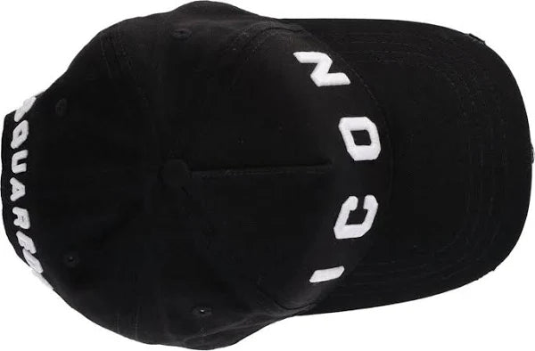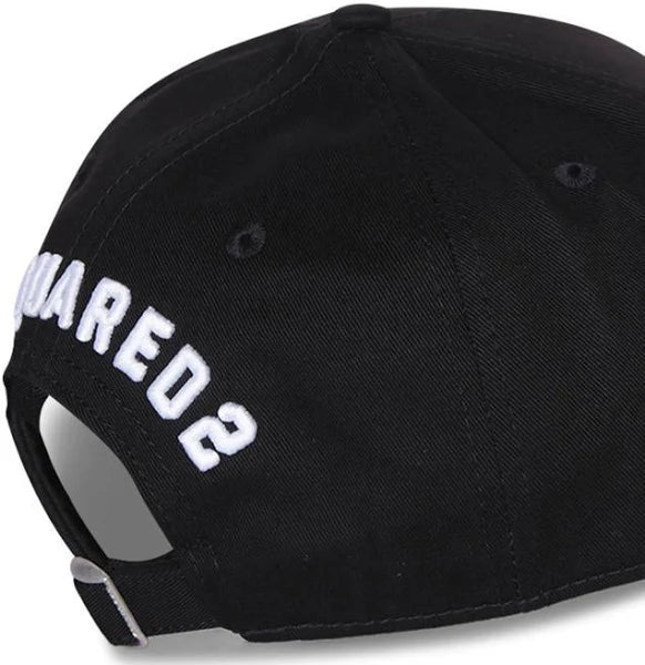 Questo cappellino da baseball DSQUARED2 nero presenta un design Icon ricamato, visiera curva e chiusura regolabile. Realizzato al 100% in cotone e poliestere, questo berretto offre stile e resistenza. Perfetto per aggiungere un tocco di raffinatezza a qualsiasi outfit casual.