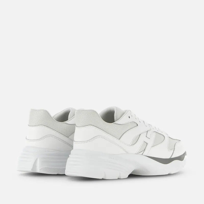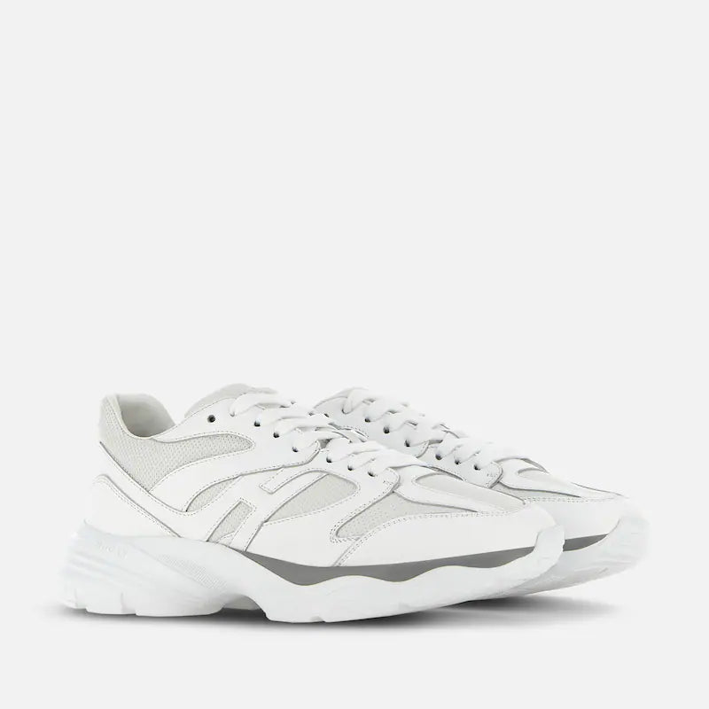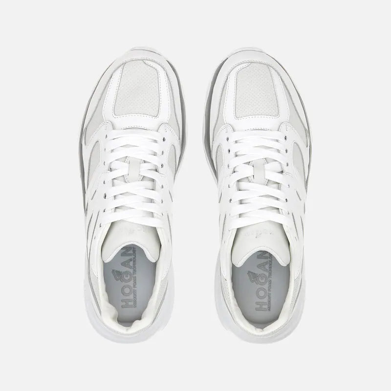 Le sneakers Hogan H665 rinnovano il binomio contemporaneo di estetica sportiva e indole urbana. Leggere e flessibili, grazie alla particolare costruzione, hanno una suola bicolore in EVA extralight. La tomaia in pelle, alleggerita da fori e una punzonatura frontale, presenta un’H allungata che gira intorno al tallone. Il fussbett in memory foam assicura morbidezza e ammortizzazione.