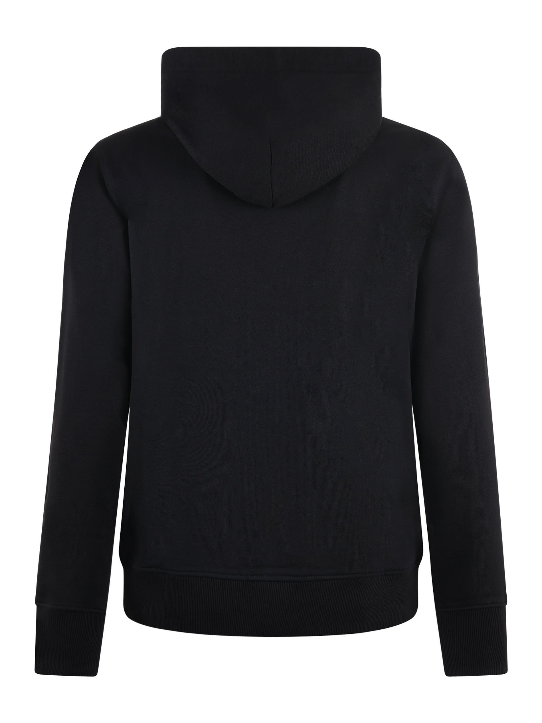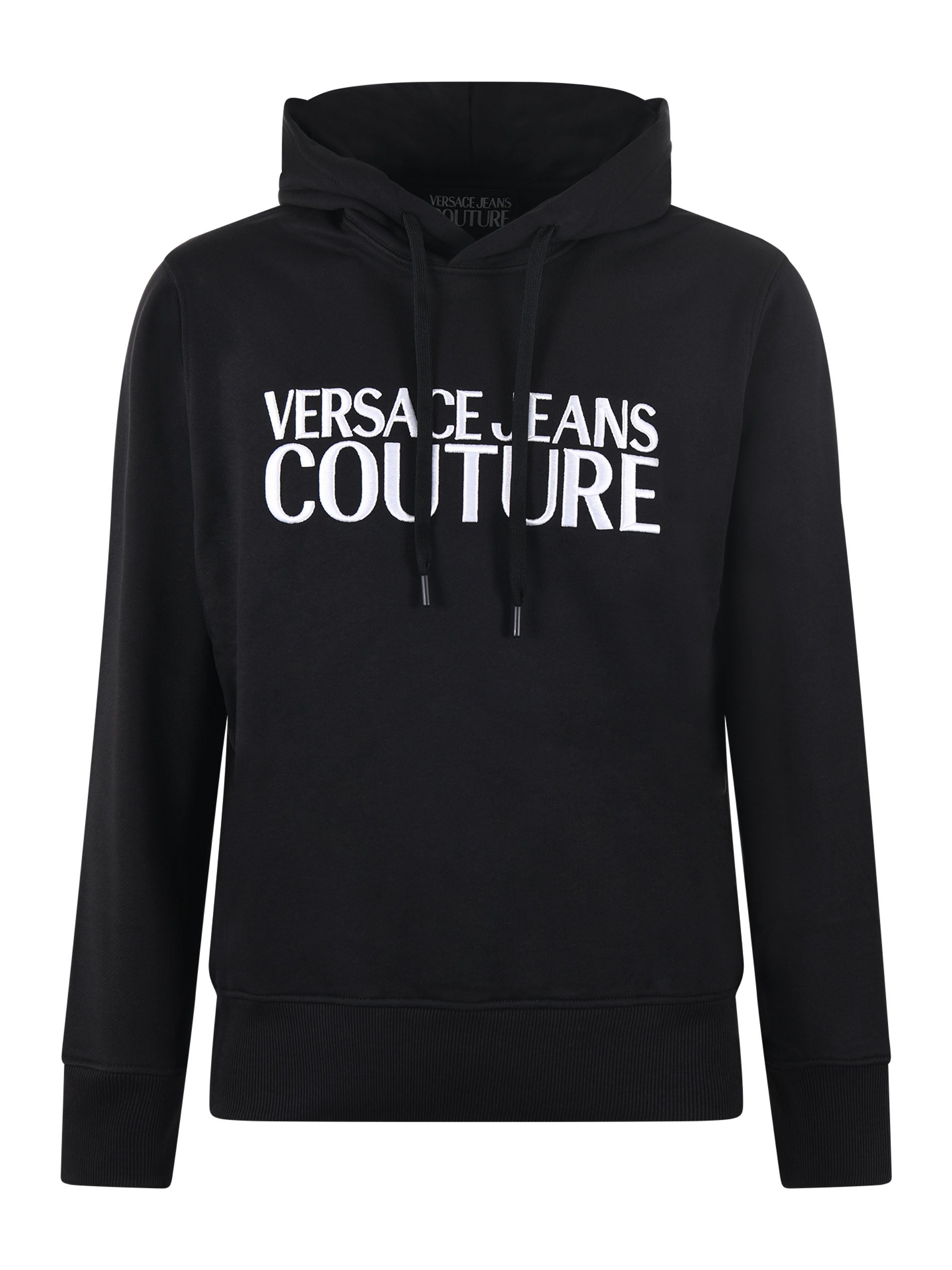 Sapientemente realizzata in cotone 100%, questa felpa nera Versace Jeans Couture presenta un maxi logo ricamato sul davanti e un cappuccio con coulisse. Con maniche lunghe e polsini e orlo a coste, l'interno è foderato in pile per un maggiore comfort. Perfetto per chi cerca un'aggiunta comoda ed elegante al proprio guardaroba.